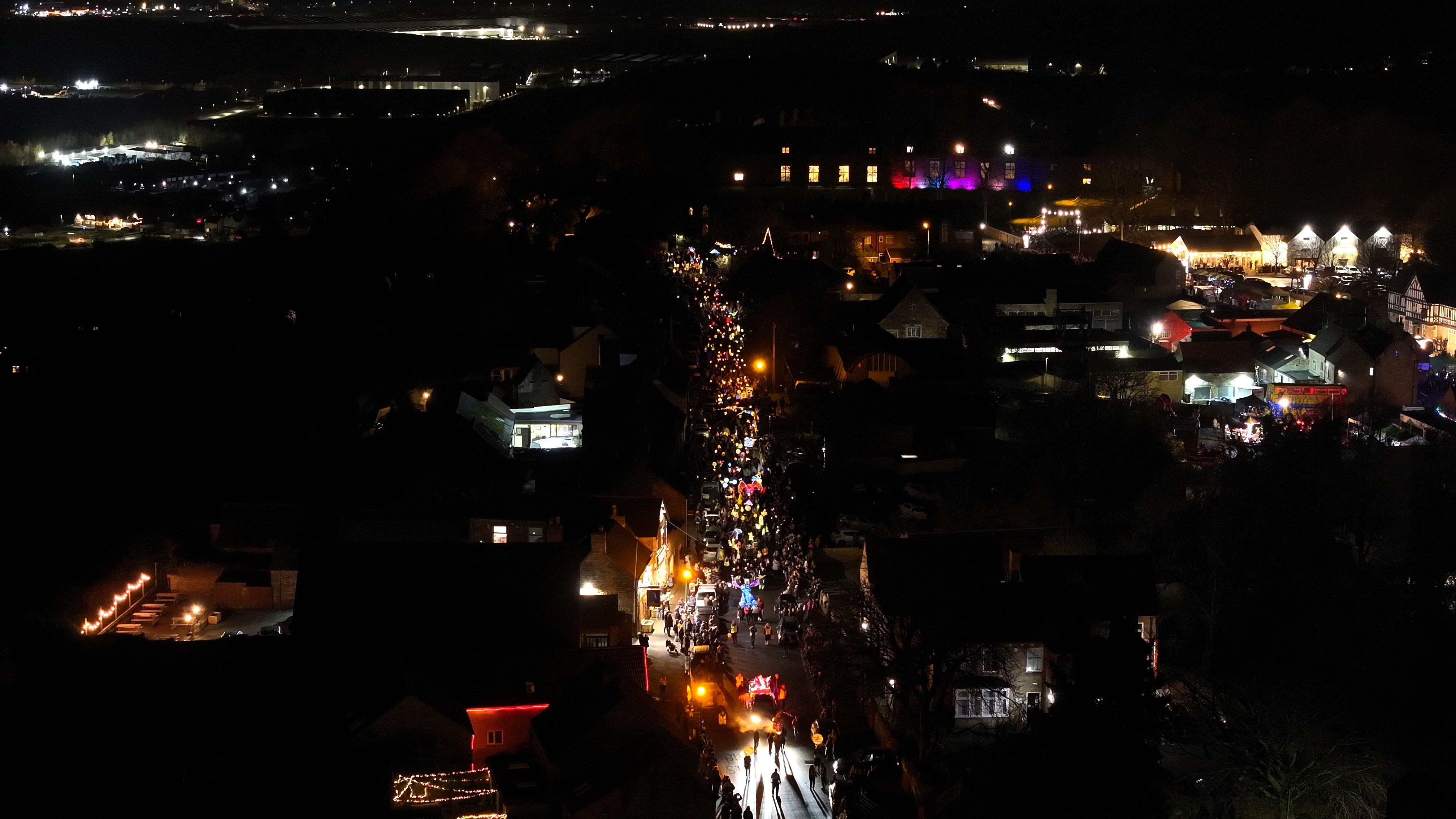 Aerial drone photography of the Lantern Parade held in Bolsover Derbyshire each year the Lanterns look great from the drone perspective.