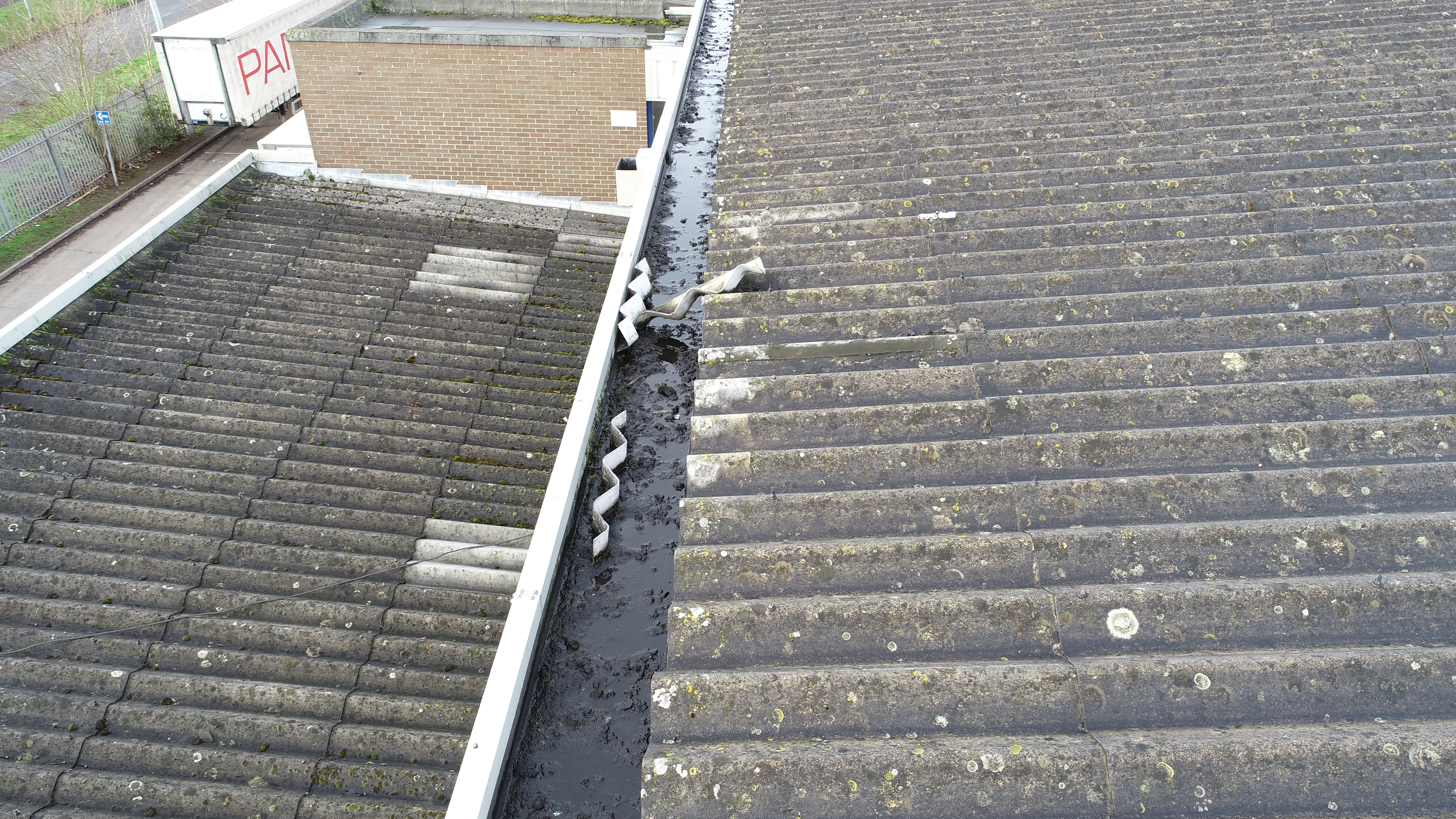looking out for cut edge corrosion, rot, gutters, dilapidations, overview, drone survey, drone inspections completing the roof survey with drone photography